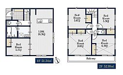 土地面積土地:105.02m2〜114.60m2 建物:86.53m2〜99.19m2