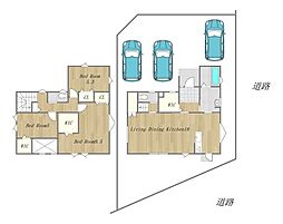 土地面積土地:211.21m2(1号地) 私道負担なし 建物:107.98m2(1号地)