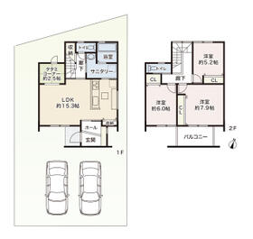 土地面積土地:206.37m2〜206.48m2 建物:106.51m2〜111.06m2