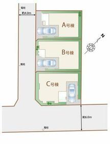 土地面積土地:57.21m2〜58.15m2 建物:106.51m2〜107.41m2