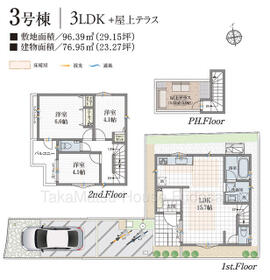 土地面積土地:55.62m2〜60.43m2 建物:71.10m2〜78.32m2