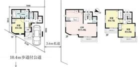 土地面積土地:115.3m2〜115.33m2 建物:88.59m2〜91.08m2