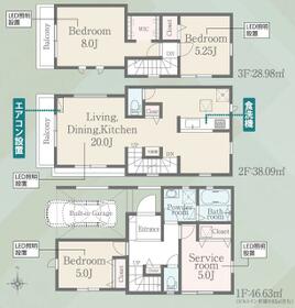 土地面積土地:90.98m2・96.74m2 建物:78.55m2〜89.53m2