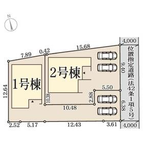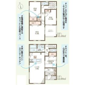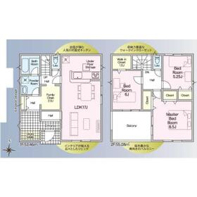 土地面積土地:184.47m2(約55.80坪)〜197.43m2(約59.72坪) 建物:109.30m2(約33.06坪)〜112.13m2(約33.91坪)