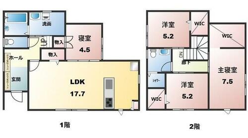 | 設備 | 追焚機能・フローリング・浴室乾燥機・Wクロゼット・シャンプードレッサー・ウォシュレット・モニタ付インターホン・庭・クロゼット・トイレ2ヶ所・IHクッキングヒータ・食器洗浄乾燥機・電気・側溝 | ||||