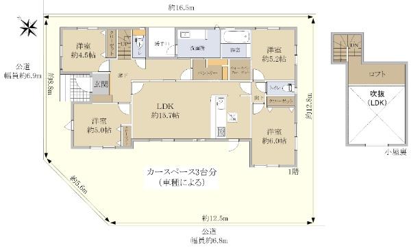 ※土地(建築条件なし)で「建物プラン例」が表記してある時、そのプラン例は特定の建築請負会社によるもので、当該建築請負会社以外で建てた場合、同様のものが同価格で建てられるとは限りません。また建築請負会社を特定するものではありません。