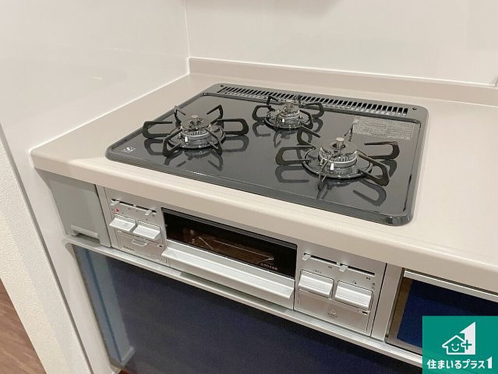 ダブル高火力Siセンサー付きコンロ!3口あるので、まとめて料理をする時も大活躍!
