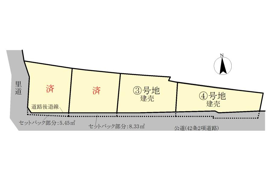 | 地目 | 宅地 | 道路付け | 道路幅:2.3m、アスファルト舗装、※セットバック面積18.54㎡の地目を、公衆用道路に変更予定。 | ||