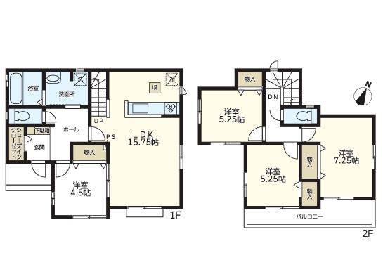 | 設備 | 設計住宅性能評価書 / 建設住宅性能評価書(新築時) / フラット35・S適合証明書 / フラット35Sに対応 / 地盤調査済 / 年内引渡可 / 駐車3台以上可 / 省エネ給湯器 / 南向き / システムキッチン / 浴室乾燥機 / 全居室収納 / 駅まで平坦 / LDK15畳以上 / 整形地 / シャワー付洗面化粧台 / 対面式キッチン / トイレ2ヶ所 / 浴室1坪以上 / 2階建 / 南面バルコニー / オートバス / 床下収納 / 浴室に窓 / TVモニタ付インターホン / 節水型トイレ / 通風良好 / 全居室フローリング / シューズインクローク / 小学校 徒歩10分以内 / 平坦地 / 浄水器 | ||||