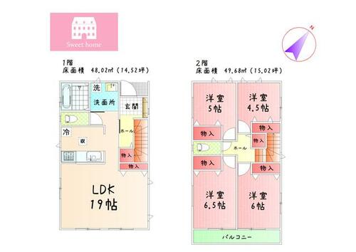 設備 | 収納スペース・都市ガス・トイレ2ヶ所・床下収納・上水道・下水道 | ||||