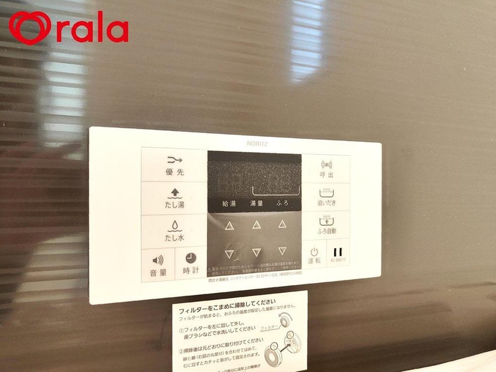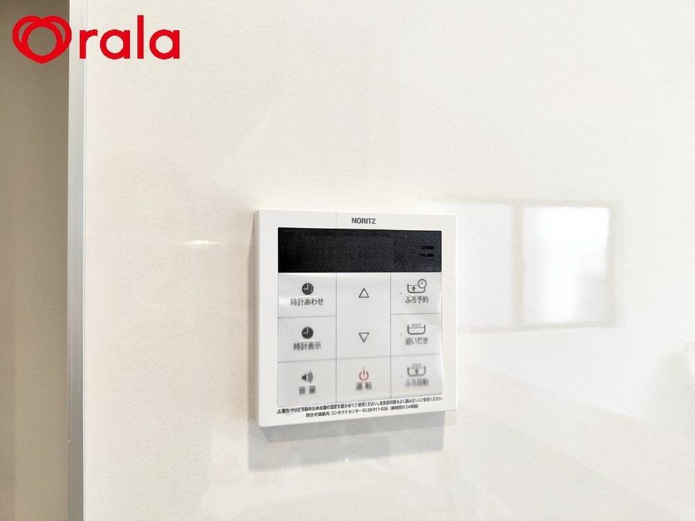 【給湯リモコン(リビング)】リビングにあるので、お料理をしながらでも「ピッ」と一押しで、湯張りや追い焚き機能が使える!時間が経ってお湯が冷めてしまった時も、追い焚き機能を使用することでいつでも温かいお風呂に入ることができちゃいます。
