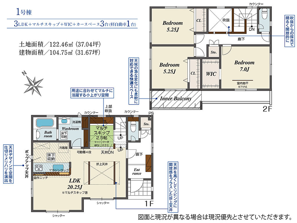 建物面積 | 104.75m2(約31.68坪) | 土地面積 | 122.46m2(約37.04坪) | ||