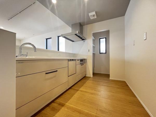 タカラスタンダード「OFELIA」を採用。傷、汚れ、熱に強いホーロー素材を各所に使用しております。・シンクとワークトップの接合部に隙間が無く掃除がしやすい人造大理石一体型シンク・引き出しがゆっくり閉まるソフトクローズ設計・家事がぐんと楽になる食洗機付き・料理後のお掃除が一拭きで完結できるIHコンロ