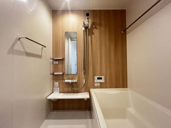 Housetec「Rucre」を採用。汚れ落ちの良さが続く新素材の浴槽でキレイ長持ち。湯温が低下しにくい高断熱浴槽、断熱フタで節水節電が可能です。暖房換気乾燥機付きで、雨の日の洗濯干し、寒い日のヒートショック予防、浴室内の湿気対策など便利な機能が揃っています。汚れやすいカウンターは取り外し可能。浴槽に置いてトレーとしても使用可能です。