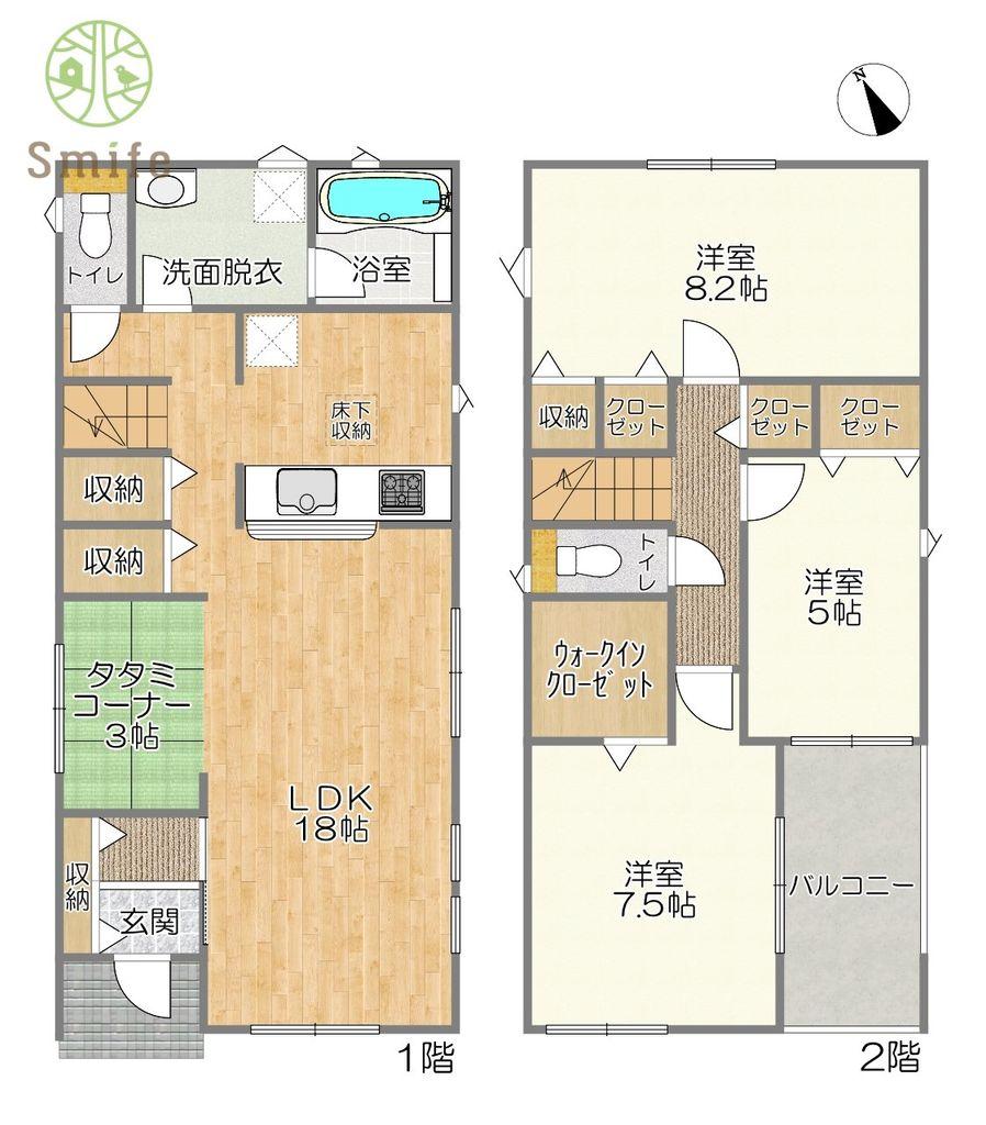 | 設備 | 設計住宅性能評価書 / 建設住宅性能評価書(新築時) / フラット35Sに対応 / 年内引渡可 / 駐車2台可 / LDK18畳以上 / スーパー 徒歩10分以内 / 南向き / システムキッチン / 浴室乾燥機 / 全居室収納 / 南側道路面す / シャワー付洗面化粧台 / 対面式キッチン / セキュリティ充実 / ハイルーフ駐車場 / トイレ2ヶ所 / 浴室1坪以上 / 2階建 / 複層ガラス / オートバス / 温水洗浄便座 / 床下収納 / 浴室に窓 / TVモニタ付インターホン / 全居室フローリング / ウォークインクローゼット / 全居室複層ガラスか複層サッシ / 都市ガス / 小学校 徒歩10分以内 / ルーフバルコニー / 平坦地 / 浄水器 | ||||