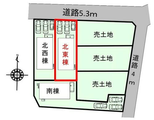 私道負担・道路 | - | 道路付け | 北 5.3m 公道 接面7.3m | ||