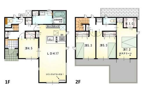| 設備 | エアコン・給湯・バルコニー・収納スペース・追焚機能・フローリング・浴室乾燥機・Wクロゼット・シャンプードレッサー・ウォシュレット・システムキッチン・カウンターキッチン・モニタ付インターホン・庭・クロゼット・トイレ2ヶ所・床下収納・IHクッキングヒータ・浄水器・食器洗浄乾燥機・複層ガラス・ディンプルキー・電気・上水道・下水道・太陽光発電システム・省エネ給湯器 | ||||