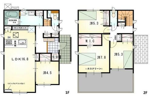 | 設備 | エアコン・給湯・バルコニー・収納スペース・追焚機能・フローリング・浴室乾燥機・Wクロゼット・シャンプードレッサー・ウォシュレット・システムキッチン・カウンターキッチン・モニタ付インターホン・庭・クロゼット・トイレ2ヶ所・床下収納・IHクッキングヒータ・浄水器・食器洗浄乾燥機・複層ガラス・ディンプルキー・電気・上水道・下水道・太陽光発電システム・省エネ給湯器 | ||||