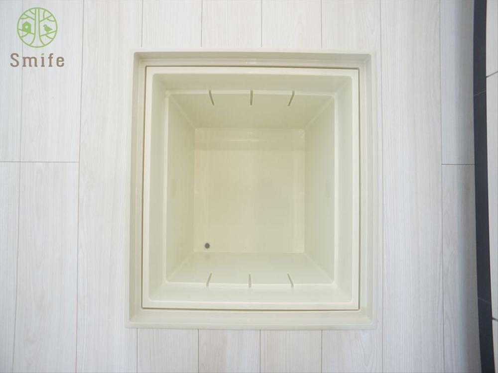 床下収納は、キッチンの収納が1UPします。しまう場所に困るホットプレートやたこ焼き機等の調理器具や、缶詰や乾パンなどの非常食などのストックに最適です。床下収納は点検口にして床下の状態を確認ができます。