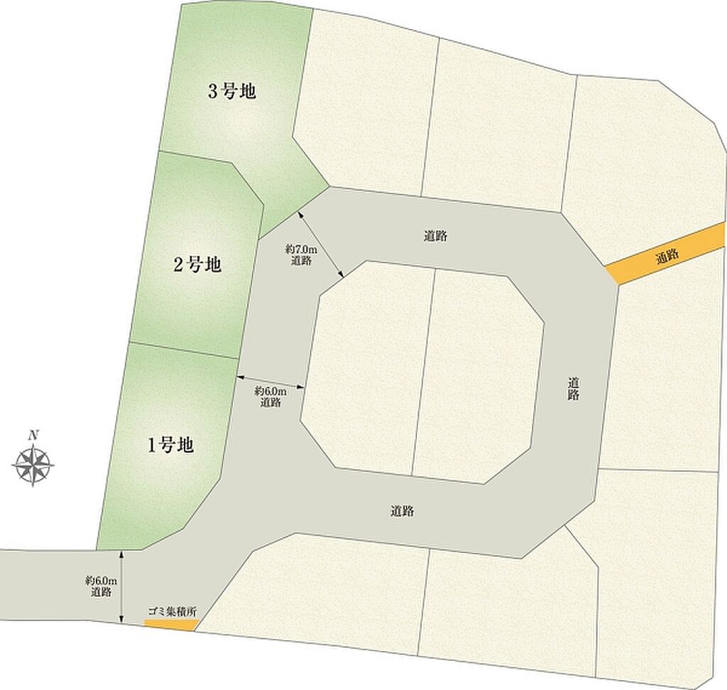 | 間取り | 3LDK(2号地)、4LDK(1号地、3号地) | ||||