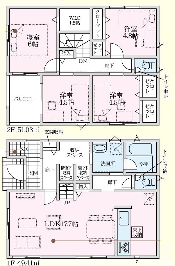 | 建物面積 | 100.41㎡・106.51㎡ | 土地面積 | 144.36㎡・156.73㎡ | ||