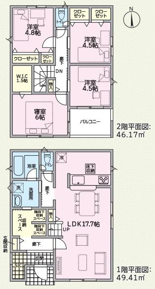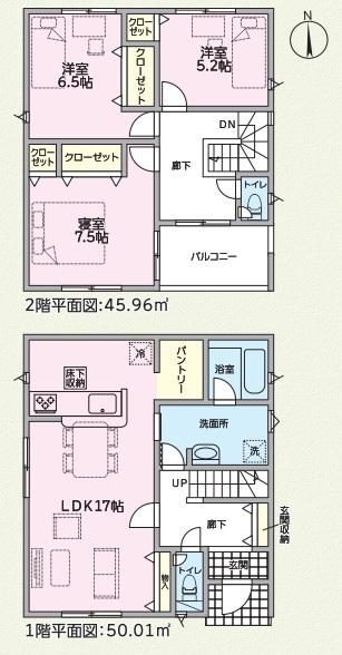 | 建物面積 | 95.58㎡・95.97㎡ | 土地面積 | 148.29㎡・160.28㎡ | ||