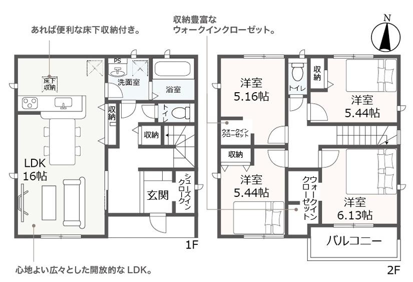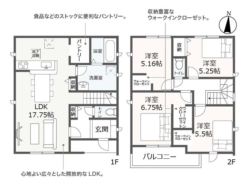 ※土地(建築条件なし)で「建物プラン例」が表記してある時、そのプラン例は特定の建築請負会社によるもので、当該建築請負会社以外で建てた場合、同様のものが同価格で建てられるとは限りません。また建築請負会社を特定するものではありません。