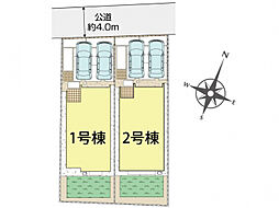 土地面積土地:144.41m2(43.68坪) 建物:100.54m2・101.17m2(30.41坪・30.60坪)