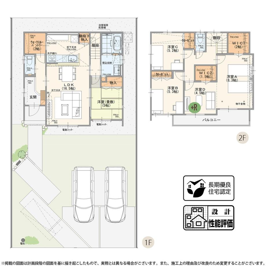 | 間取り | 5LDK+ウォークインクローゼット(2)+パントリー+リビングアクセス階段+リネンスペース+ワイドバルコニー 長期優良住宅認定 | ||||