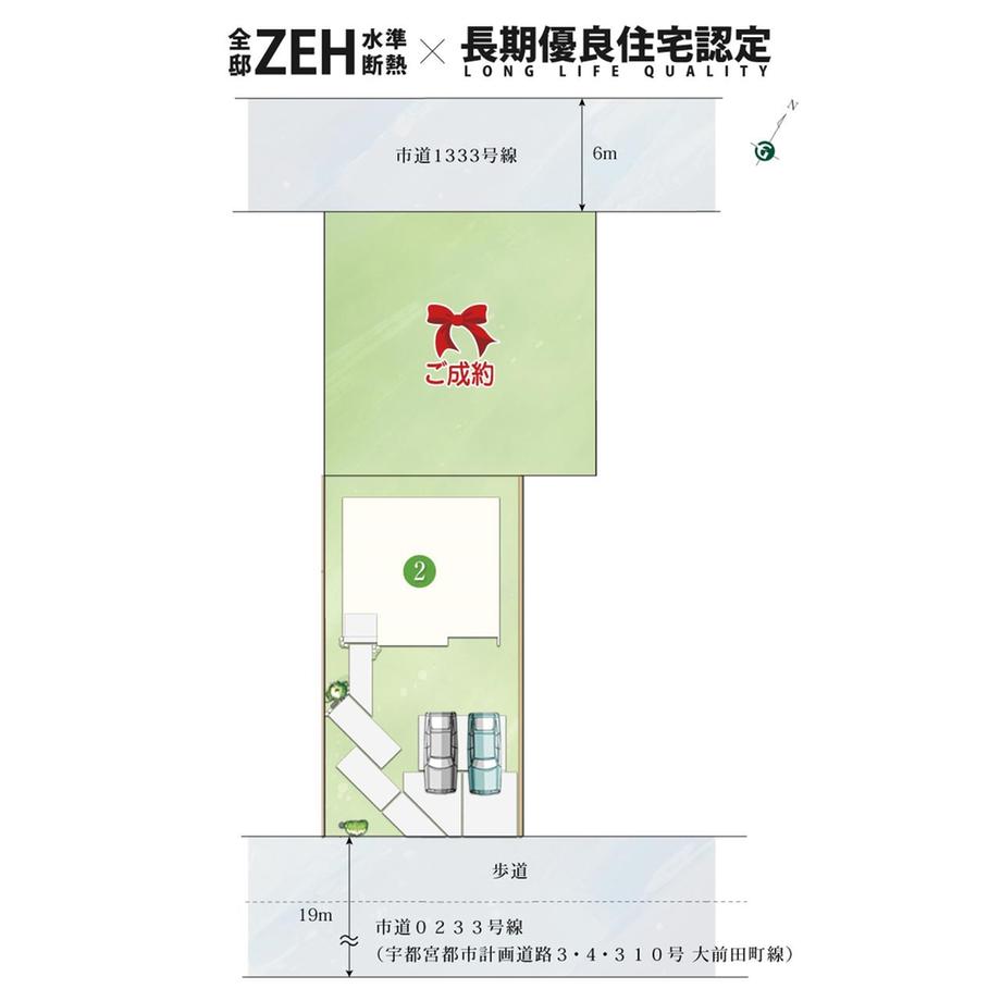 | 備考 | ※入居可能日及び完成時期に関しては、工期の遅れが生ずる場合もございますので、要相談となります。 / 担当者:川崎 幸秀、設備:東京電力、公営水道、公共下水道、オール電化、建築確認番号:第東日本25-05084号(令和7年4月30日)、※各号地の上空を電線が通過します。※2号地の電柱に自治会管理の防犯灯が設置されています。※道路幅員に関しては、接道状況により数値が異なる場合がございますのでご了承下さい。※更新・メンテナンス中に予約・売約済の場合はご容赦願います。※掲載の図面は計画段階の図面を基に描き起こしたもので、実際とは異なる場合がございます。また、施工上の理由及び改良のため変更することがございます。 | ||||