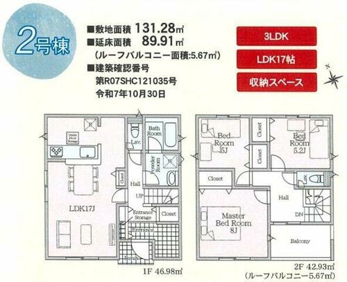 | 建物面積 | 89.91㎡ | 土地面積 | 131.28㎡ | ||