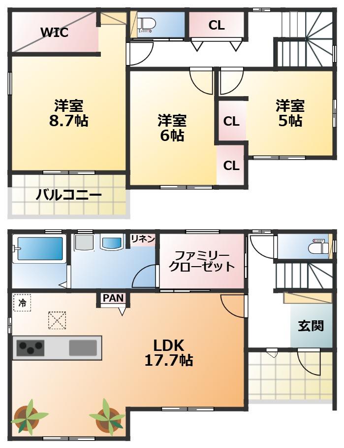 ※土地(建築条件なし)で「建物プラン例」が表記してある時、そのプラン例は特定の建築請負会社によるもので、当該建築請負会社以外で建てた場合、同様のものが同価格で建てられるとは限りません。また建築請負会社を特定するものではありません。