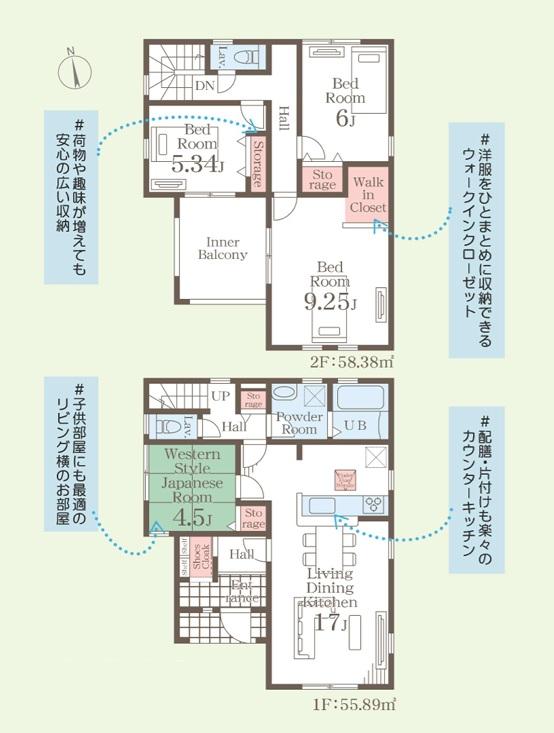 | 建物面積 | 102.68㎡~114.68㎡(31.06坪~34.69坪) | 土地面積 | 145.97㎡~183.22㎡(44.15坪~55.42坪) | ||