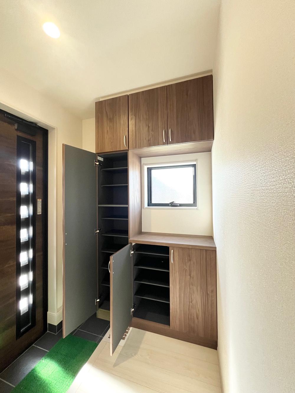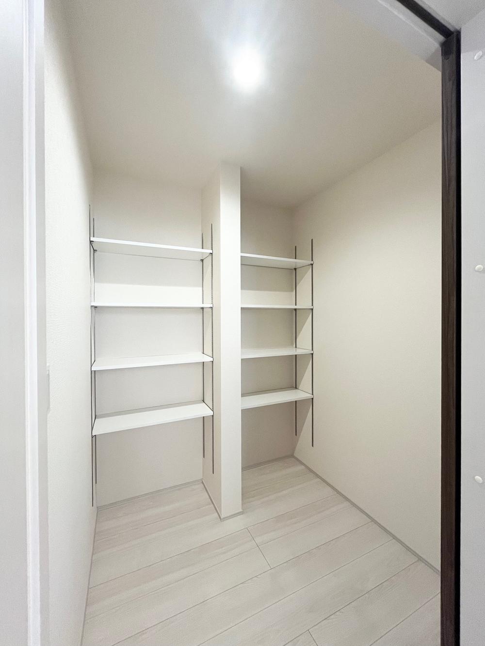 シューズクロークには、高さを自由に変えられる可動棚を採用。ブーツや長靴、スニーカーなど、靴のサイズに合わせて効率よく収納できます。また、いつでも清潔で整頓された空間でお客様を迎えることができます。