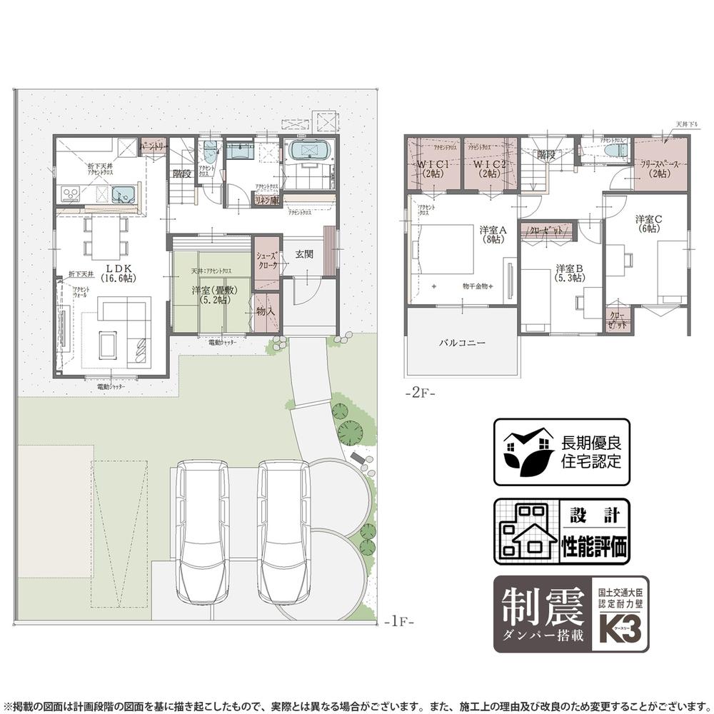 ※建築条件土地の情報内に掲載されている、建物プラン例は、土地購入者の設計プランの参考の一例であって、プランの採用可否は任意です。