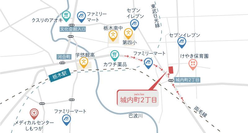 JR両毛線「栃木」歩22分~23分 東武日光線「新栃木」歩29分~30分 東武宇都宮線「野州平川」歩48分~49分 | ||||