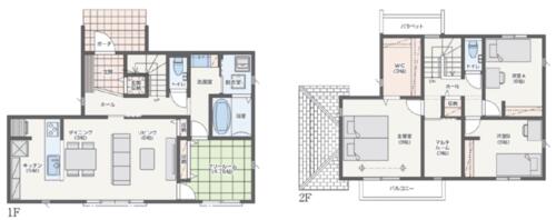 | 設備 | エアコン・収納スペース・CATV・追焚機能・都市ガス・Wクロゼット・照明器具・ウォシュレット・システムキッチン・モニタ付インターホン・庭・クロゼット・トイレ2ヶ所・IHクッキングヒータ・食器洗浄乾燥機・複層ガラス・ディンプルキー・電気・上水道・下水道・太陽光発電システム | ||||