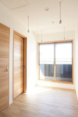 1階掃き出し窓には電動シャッターを設置。防犯性を高めるロック機能を搭載。また、室内の壁スイッチにより窓を開けずに開閉することが出来るため、エアコンの効いた室内の空気を外に逃がすことがありません。