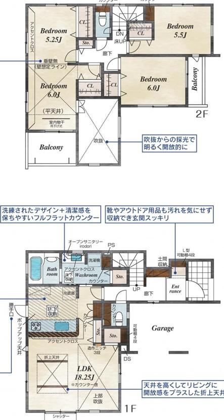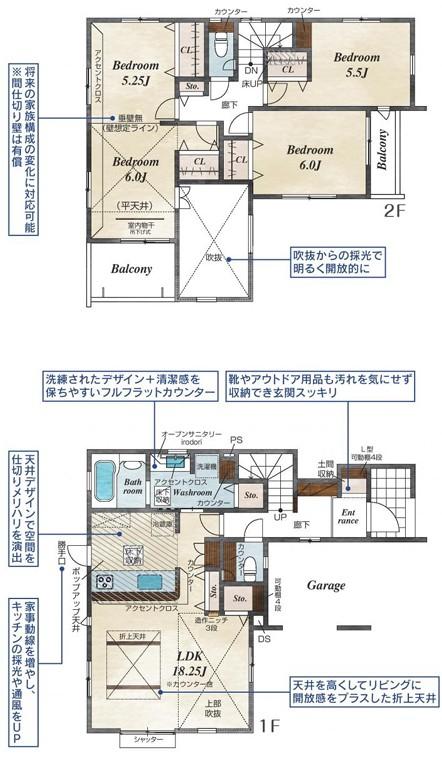 ※土地(建築条件なし)で「建物プラン例」が表記してある時、そのプラン例は特定の建築請負会社によるもので、当該建築請負会社以外で建てた場合、同様のものが同価格で建てられるとは限りません。また建築請負会社を特定するものではありません。