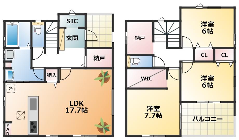 ※土地(建築条件なし)で「建物プラン例」が表記してある時、そのプラン例は特定の建築請負会社によるもので、当該建築請負会社以外で建てた場合、同様のものが同価格で建てられるとは限りません。また建築請負会社を特定するものではありません。