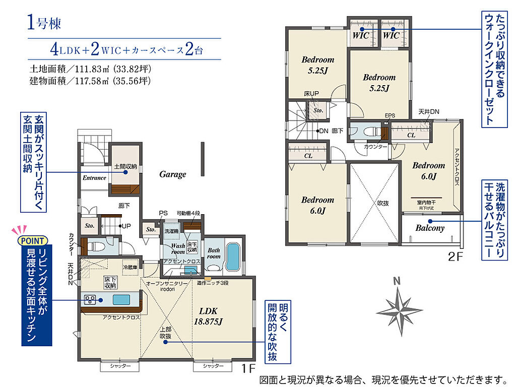 | 建物面積 | 117.58m2(約35.56坪) | 土地面積 | 111.83m2(約33.82坪) | ||