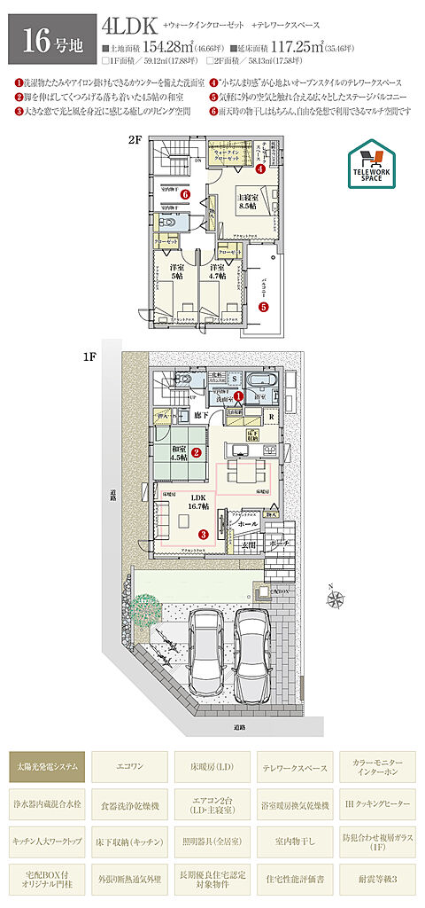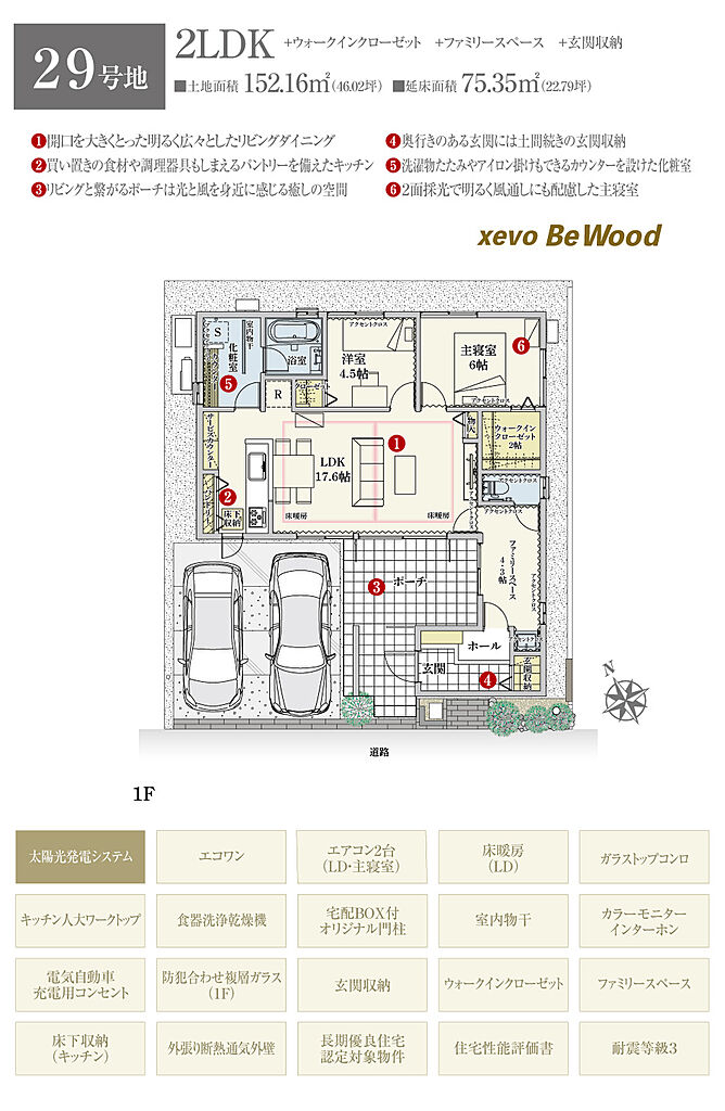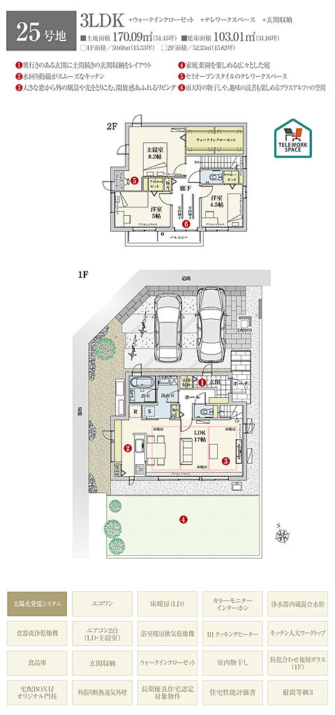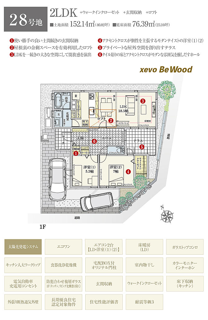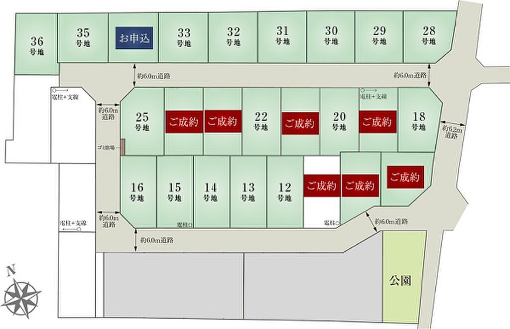 | 建物面積 | 75.35m2(29号地、32号地)~117.25m2(16号地) | 土地面積 | 152.14m2(28号地)~170.09m2(25号地) 全て私道負担なし | ||