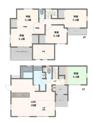 | 設備 | 追焚機能・浴室乾燥機・照明器具・シャンプードレッサー・ウォシュレット・システムキッチン・カウンターキッチン・モニタ付インターホン・トイレ2ヶ所・床下収納・IHクッキングヒータ・浄水器・食器洗浄乾燥機・電気・上水道・下水道・太陽光発電システム | ||||