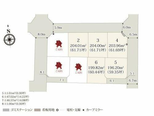 | 私道負担・道路 | - | 道路付け | 北 5.9m 公道南東 6.5m 公道 | ||