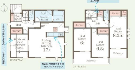 建物面積 | 106.6㎡・112.61㎡ | 土地面積 | 196.16㎡・206.2㎡ | ||