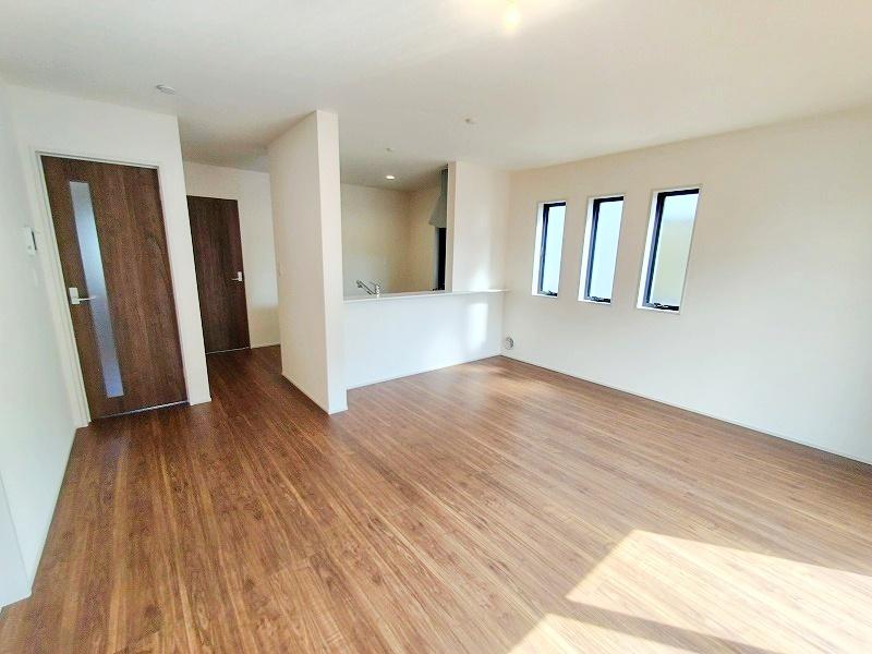 広々としたリビングは南側に設けた掃き出し窓からたくさんの陽光を取り入れてくれます。家族が集まる空間ですからやはり明るさと、暖かさは大切です。広さがありますので家具の配置に悩まなくて済むのも良いです。