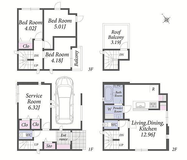 | 建物面積 | 79.96㎡・95.01㎡ | 土地面積 | 42.39㎡・54.84㎡ | ||