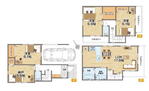 ※写真に写っている、またはパース(絵)や間取り図に描かれている家具や車などは、特にコメントがない場合、販売価格に含まれません。