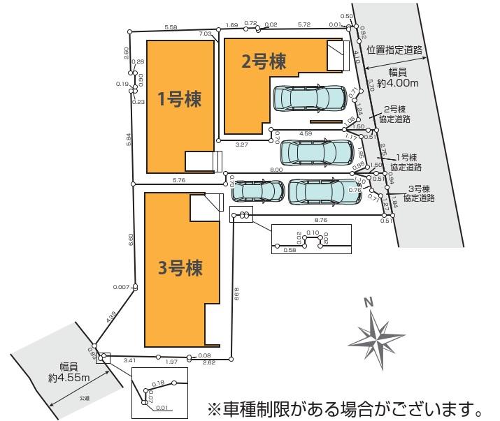 地目 | 宅地 | 道路付け | 道路幅:4m、アスファルト舗装、その他持分/あり(協定通路部分(1号棟①1.76㎡②1.38㎡、2号棟①1.42㎡②3.31㎡、3号棟①0.81㎡②1.39㎡)) | ||