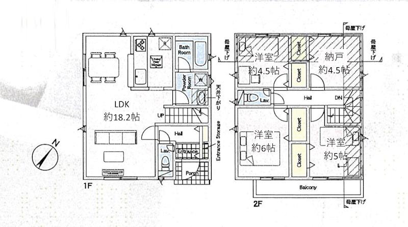※土地(建築条件なし)で「建物プラン例」が表記してある時、そのプラン例は特定の建築請負会社によるもので、当該建築請負会社以外で建てた場合、同様のものが同価格で建てられるとは限りません。また建築請負会社を特定するものではありません。